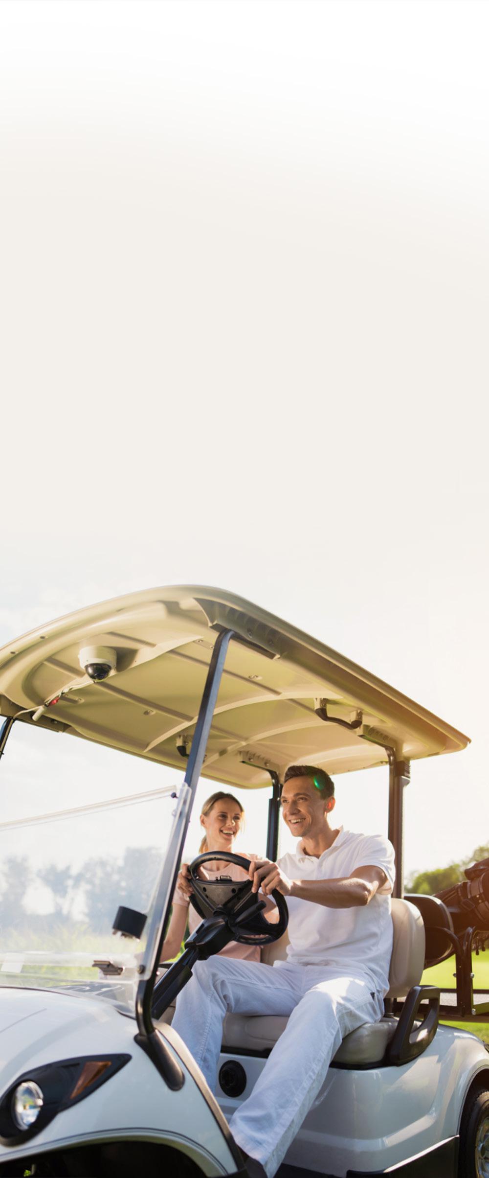 Silent electric carts whisk guests effortlessly across sprawling scenic estate.